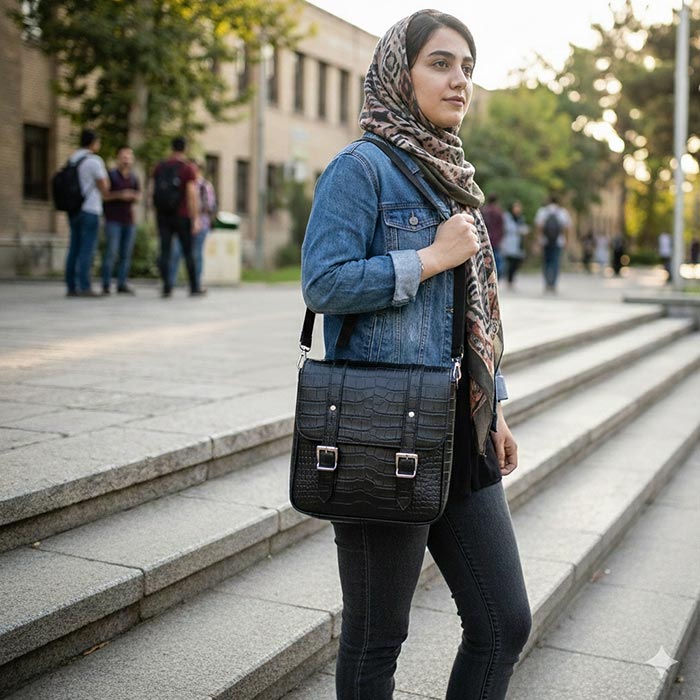 جنس کیف دوشی زنانه دانشگاهی معمولاً از برزنت ضد آب یا چرم مصنوعی سبک است تا در برابر استفاده روزانه و جابه جایی مداوم مقاوم بماند. بند قابل تنظیم و طراحی ارگونومیک باعث می شود وزن کیف بهتر توزیع شود و حمل آن در طول روز راحت تر باشد.