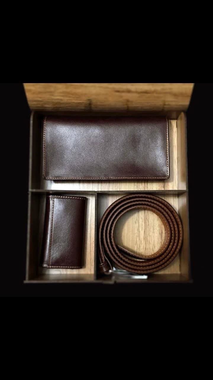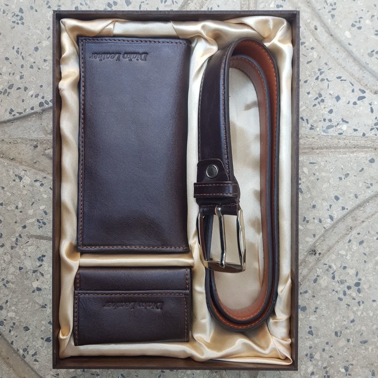 این ست هدیه شامل کمربند چرم مردانه -کیف چرم مردانه-جاسوییچی مردانه میباشد.